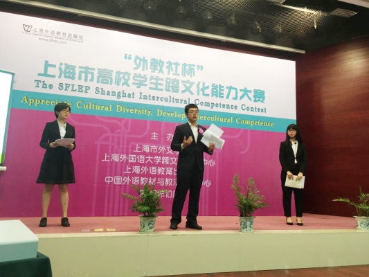 “外教社杯”上海市高校学生跨文化能力大赛决赛由上海市外文学会、上海外国语大学跨文化研究中心、中国外语教材与教法研究中心、上海外语教育出版社联合主办,以搭建跨文化学习和交流的平台为目的,共同推动高校跨文化人才的培养。