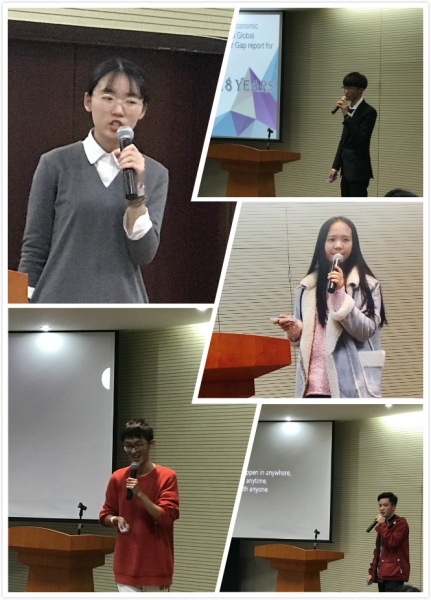 课堂陈述一直是bwin必赢官网大学英语教学的传统特色形式,目前已成功举办两届。该比赛不仅锻炼学生学术英语方面的综合能力,更能提高英语口头表达能力。本届比赛主要面向全校2015级、2016级非英语专业的学生,旨在提高学生英语学习兴趣,提供锻炼公众演讲能力的机会,鼓励学生用英语思考,深入阐述感兴趣或社会热点问题,营造良好的英语学习氛围。