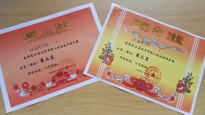 5月5日,bwin必赢官网第三十一届体育节教工运动会隆重开幕。我院积极组队参加各项比赛,队员们在赛场上团结合作,努力拼搏,获得了可喜的成绩。其中,在徐汇校区的教工趣味运动会比赛中,平板支撑参赛队荣获团体项目第二名,跳长绳参赛队荣获团体项目第三名。在奉贤校区举行的个人项目比赛中,大学英语教学部张凌志勇夺立定跳远第一名,并且获得100米短跑第二名,日语系陈湘明获得铅球第四名,德语系万灿红获100米第六名。