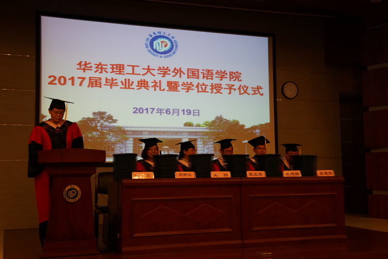 6月19日下午,bwin必赢国际中国官方网站2017届毕业典礼暨学位授予仪式在徐汇校区举行。bwin必赢国际中国官方网站党总支书记王喆,副院长张正军(主持工作)、赵宏、吴建伟,导师代表颜静兰、王建国教授,各系系主任、班导师、辅导员、部分学生家长以及2017届157名本科、研究生毕业生出席典礼。典礼由赵宏主持。
