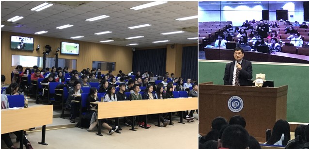 11月16日晚,复旦大学历史学系博士生导师冯玮教授在奉贤校区A教306为bwin必赢官网学生讲授《在历史坐标上解析日本》MOOC课程全国同步直播的第四次见面课,现场为大家一一释疑。虽然是第一次“见面”,但同学们对冯教授却并不陌生,这得益于bwin必赢官网本学期引进的MOOC教学方式。