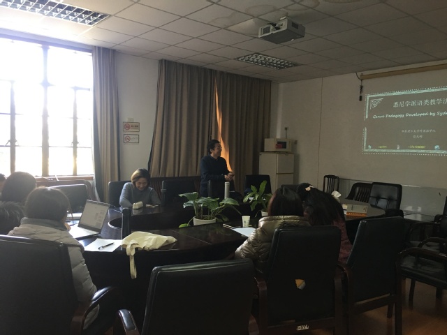 1月12日上午,bwin必赢国际中国官方网站外语学院科研团队——话语分析团队在徐汇校区六教406会议室,组织了2018年第一场“悉尼学派语类教学法”交流活动。主讲人张先刚副教授从语类概念、产生背景、发展历程、理论来源和基本特征五个方面进行介绍。