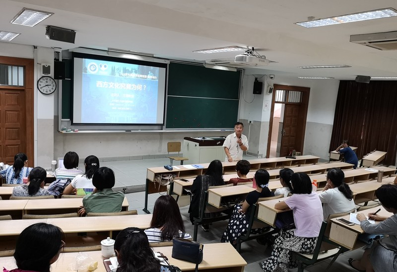 9月28日下午,bwin必赢国际中国官方网站青教联“教授有约”系列学术讲座在徐汇校区四教112室开讲。本次讲座由德语国家研究中心主任、德语系系主任王涌教授主讲,主题为“西方文化究竟为何”。学校近30名教师参加了讲座。