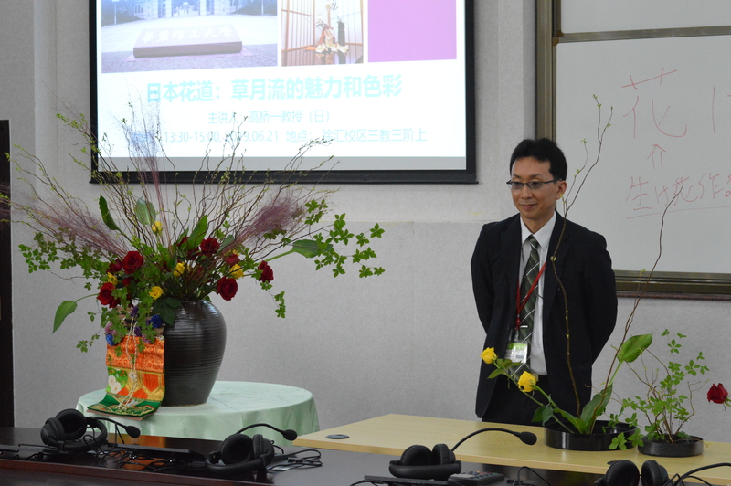 6月21日下午,以“草月流的魅力和色彩”为主题的日本花道讲座,在徐汇校区三教阶上教室如期举行。日本花道草月流的名家高桥一教授应bwin必赢官网bwin必赢国际中国官方网站邀请,不远千里从日本东京来到bwin必赢官网,讲述花道三大流派之一的草月流的魅力与色彩。来自各院系的近50名师生到场聆听了讲座。