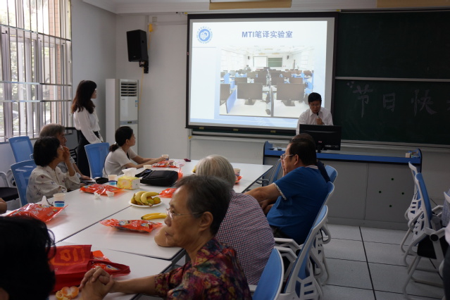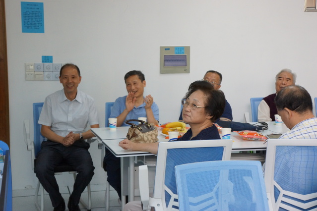 张正军向离退休教师们汇报了学院近期的发展状况。考虑到学院去年从六教整体搬迁至三教,很多老师对新环境不熟悉,张正军特意精心制作了一份关于学院介绍的PPT,为老教师们进行展示。