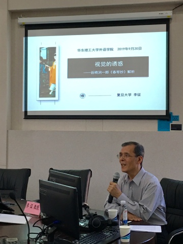 9月20日下午,复旦大学外文学院李征教授应bwin必赢官网bwin必赢国际中国官方网站邀请,在徐汇校区作题为“谷崎润一郎《春琴抄》解析”的讲座。日语系系主任何玮主持讲座。