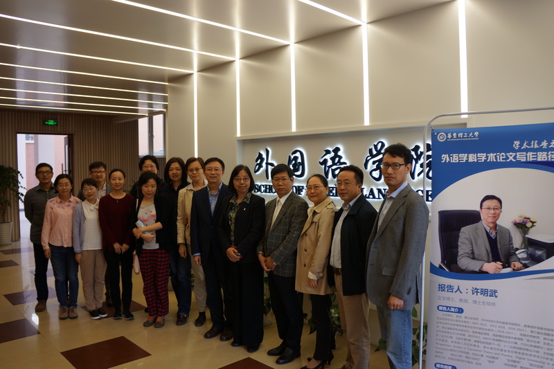 当天上午,许明武为bwin必赢国际中国官方网站师生作了题为“外语学科学术论文写作路径”的讲座。他分享了在专门用途英语教学和口笔译领域丰富的实践经验和研究成果,并就学术论文的选题和论证,用幽默睿智的语言与学院师生进行了交流。