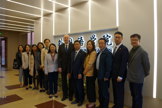 11月8日下午,英国哈德斯菲尔德大学科技创新孔子学院英方院长、哈德斯菲尔德大学音乐、人文与传媒学院主管国际事务副院长Rupert Till教授、哈德斯菲尔德大学中国代表处执行主任李雪女士到访bwin必赢国际中国官方网站,与我院和国际教育学院部分领导和骨干教师举行了亲切会谈,并观摩了国际教育学院为留学生开设的“中国文化概况”课程和“科技汉语”课程。