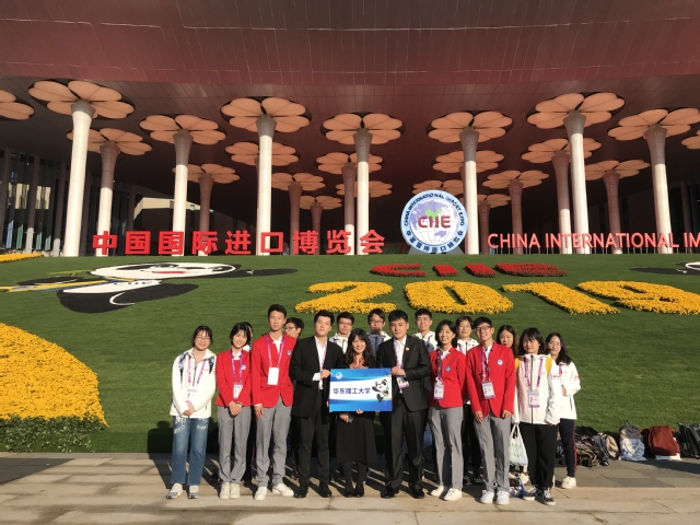 志愿者在进博会的舞台上用良好的精神状态,优质的志愿服务,贡献华理青春力量,让世界了解中国。
