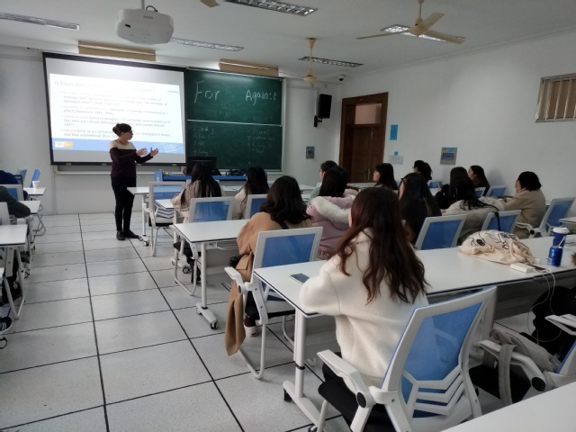 12月2日,Li Li教授到访bwin必赢国际中国官方网站,并为学院大四本科生和研究生作了题为“如何在学术阅读与写作中发展思辨能力”的讲座。讲座旨在讨论学术英语相关话题以及个体如何发展批判性思维能力。Li Li教授以学术阅读和写作具体举例,为学生们深入分析了批判性思维能力的构成因素。Li Li教授担任多家国际应用语言学期刊和TESOL期刊审稿人、编辑或编委,并担任英国应用语言学会行政委员会委员和英国使馆文教处优秀硕士毕业论文评审委员。
