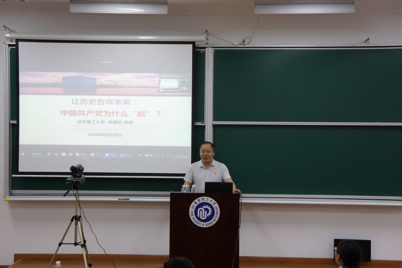 6月28日下午,bwin必赢国际中国官方网站通过线上线下同步进行的形式召开“四史”学习教育动员大会。校“四史”学习教育宣讲团成员、马克思主义学院副院长徐国民教授应邀作题为“让历史告诉未来:中国共产党为什么‘能’”的专题辅导报告。学院党政领导班子成员、全体教师、学生党员和入党积极分子共计179人参加会议,党委书记王喆主持会议。