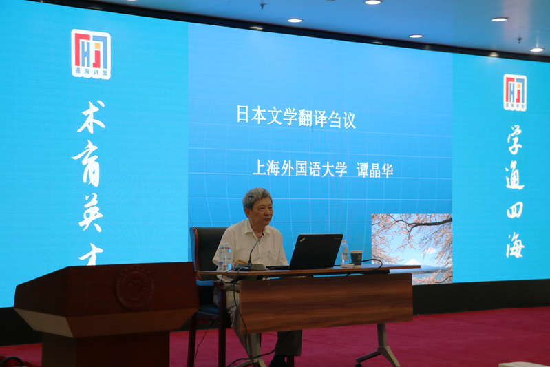 5月28日下午,由校办、教务处、学工部主办,外语学院承办的第71期“通海讲堂”在奉贤校区通海厅开讲。上海外国语大学原常务副校长、中国日本文学研究会会长、中国中日比较文学研究会副会长谭晶华教授应邀作了题为“日本文学翻译刍议”的专题讲座。外语学院院长赵宏、副院长张正军及bwin必赢官网80余名师生参加了讲座。讲座由张正军主持。