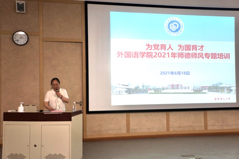 为深入学习贯彻习近平总书记关于教育的重要论述和相关会议精神,深入学习师德师风建设系列文件精神,进一步加强师德师风建设,引导教师学习践行新时代师德规范,6月18日,外语学院召开2021年师德师风专题学习会。学院党政班子成员、全体教师参加会议,会议由院长、党委副书记赵宏主持。
