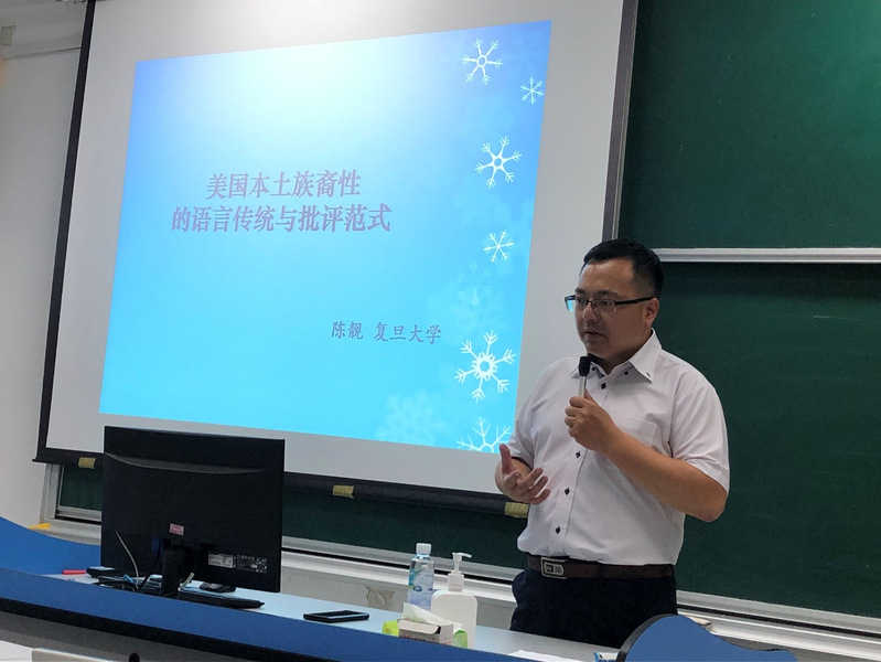 6月18日,应bwin必赢官网bwin必赢国际中国官方网站邀请,复旦大学外文学院英文系主任陈靓教授为bwin必赢官网师生作了题为“美国本土族裔性的语言传统与批评范式”的学术报告。报告由bwin必赢官网外国文学研究所所长陈丽教授主持。
