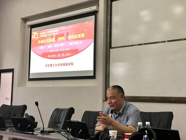 7月9日下午,应bwin必赢官网bwin必赢国际中国官方网站邀请,上海交通大学bwin必赢国际中国官方网站博士生导师杨枫教授为bwin必赢官网师生作了题为“外语论文选题、研究、写作及发表”的学术报告。