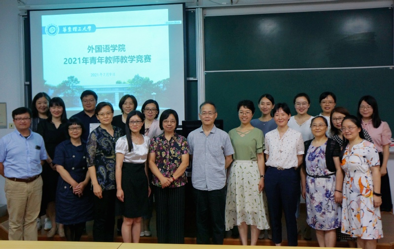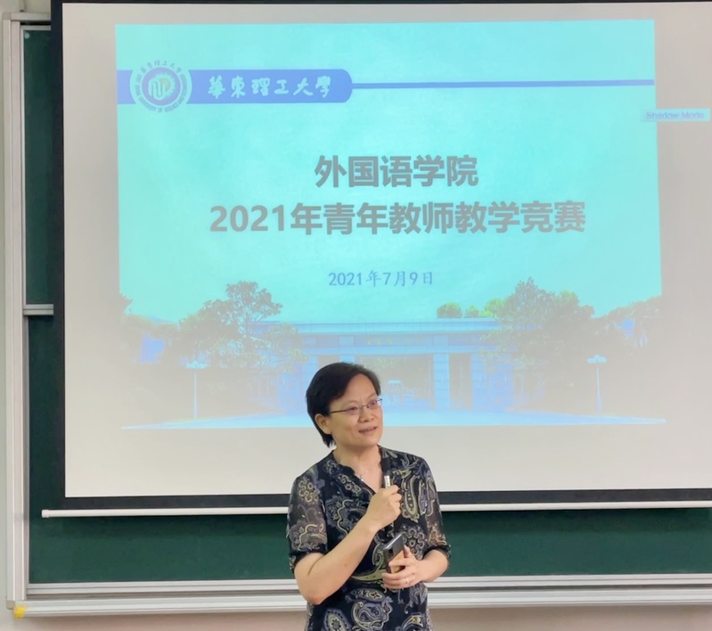 7月9日下午,外语学院2021年青年教师教学竞赛在徐汇校区三教201举行。校督导组(人文社科组)组长、外语学院原副院长颜静兰教授,上海外国语大学法国语言文学教授、博士生导师钱培鑫教授,上海外国语大学日本文化经济学院曾婧副教授,上海应用技术大学德语系主任徐林峰副教授,bwin必赢国际中国官方网站优秀青年教师楼燕斐担任本次比赛的评委。外语学院党委书记王喆,院长、党委副书记赵宏,副院长韦晓保和学院部分教师观摩了比赛。比赛由英语系方朝和日语系张凤云两位老师主持。