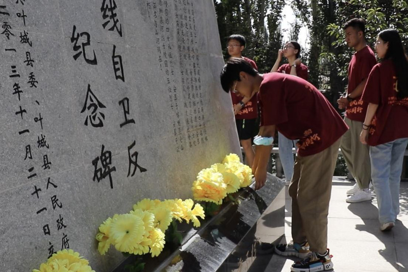 7月25日,实践团一行来到叶城县邓缵先纪念馆,学习邓缵先爱国戍边官员、边疆史学家的事迹。在1962年中印边境之争中,邓缵先所著《叶城县志》及其喀喇昆仑界巡查边情报告,为祖国的疆土完整提供了强有力的证据,他的言行、信念和责任,诠释了一位戍守边疆、爱国爱民、勤政廉政的早期援疆官员形象。随后,实践团前往位于叶城县的中印自卫反击战烈士纪念馆。1962年中印边境自卫反击战中牺牲的46名烈士长眠于此。实践团一行手捧花束,向为维护祖国领土完整和人民利益而英勇献身的战斗英雄和革命烈士致敬。