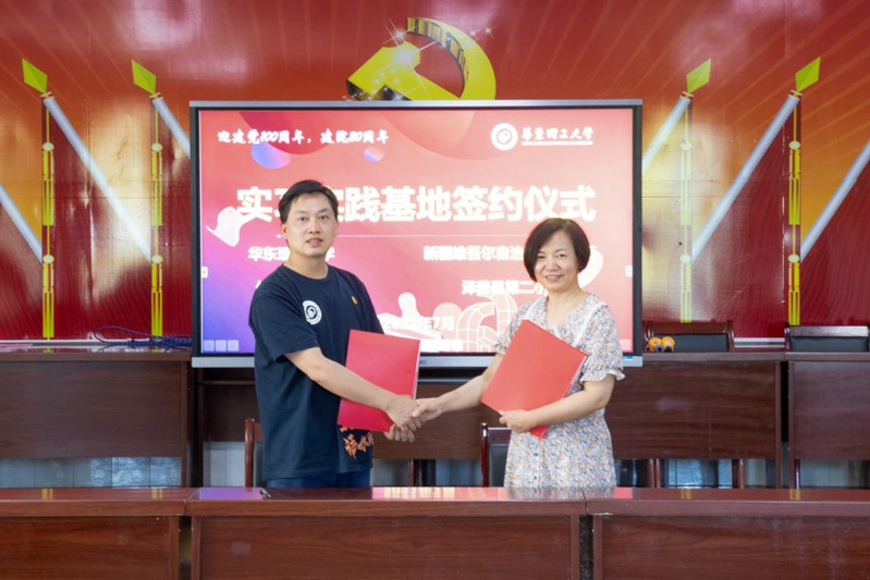 7月22日,学院师生前往上海市对口支援新疆喀什的叶城县、泽普县,走访上海援疆分指挥部,并与当地小学展开交流。华理外语学院与泽普县第二小学共建实习实践基地,就语言教学研究、党团建设等提出美好愿景,助力双校共同发展,学院师生以此为契机,秉持“语言服务社会”理念,助力泽普二小预语言教育及研究,巩固脱贫攻坚成果,成为服务乡村振兴的主力军。会上,外语学院党委副书记樊俊与泽普县第二小学杨静校长签订了实践共建协议。
