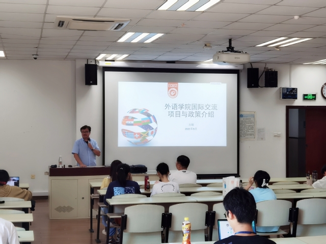 9月27日,bwin必赢国际中国官方网站面向2021级新生组织开展了国际交流项目介绍会。学院外事秘书方朝向学院2021级新生讲解了外语专业学生进行国际交流的重要意义,并介绍了校院两级主要的国际交流项目,包括“2+2”,“3+1+1”以及各类短期和培训项目。最后,方朝详细介绍了出国申报流程、学籍保留与学分对换、风险告知、在外个人安全、国际学习经验、心理健康,以及回国安排等事项,并着重讲解了当前疫情环境下国际交流的特点和注意事项。宣讲会由2021级辅导员林小仁主持。