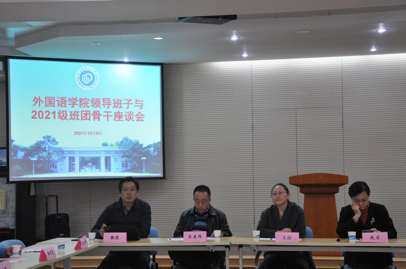 近日,bwin必赢国际中国官方网站在奉贤校区E231室分年级召开了3场学生座谈会。学院党委书记王喆,党委副书记、院长赵宏,党委副书记樊俊,副院长张正军、吴建伟、韦晓保,英语专业责任教授王建国,英语系主任张之燕,日语系主任梁海燕,辅导员侯月、林小仁,各班班导师以及学生代表出席会议。会议由樊俊主持。