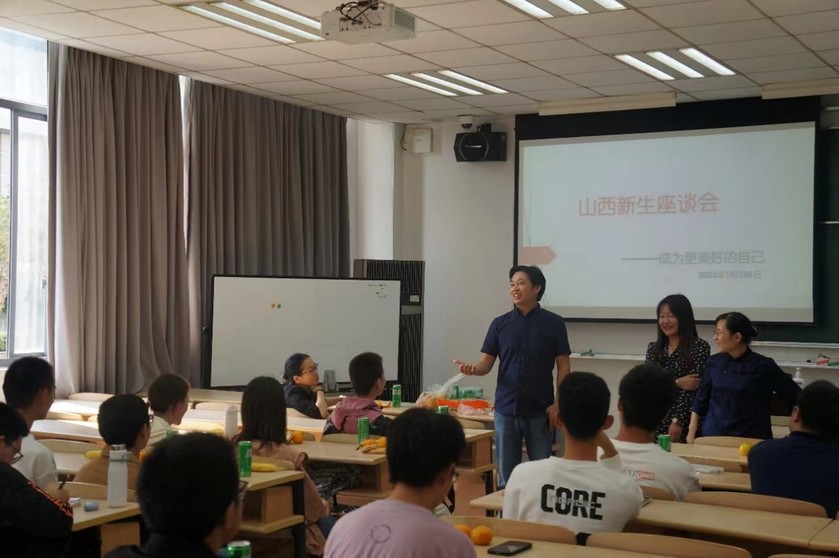 10月26日中午,bwin必赢国际中国官方网站在奉贤校区E教召开2023级山东、山西新生座谈会。bwin必赢国际中国官方网站院长赵宏,副书记樊俊,党政办主任熊祥军,教师代表张凤云、华静等及山东、山西新生共六十余人参会。座谈会分别由英语系杨慧敏老师和德语系次晓芳老师主持。